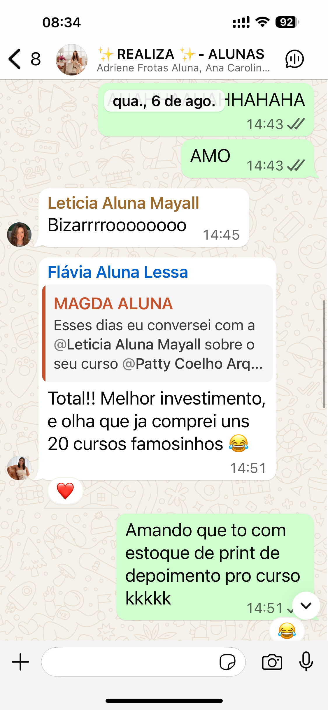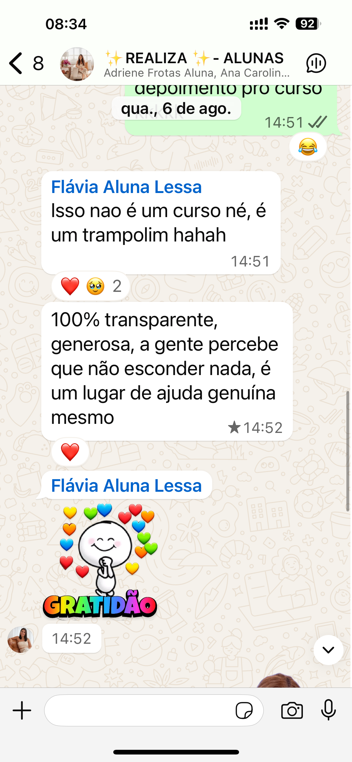 Veja o que as minhas alunas estão dizendo sobre o REALIZA